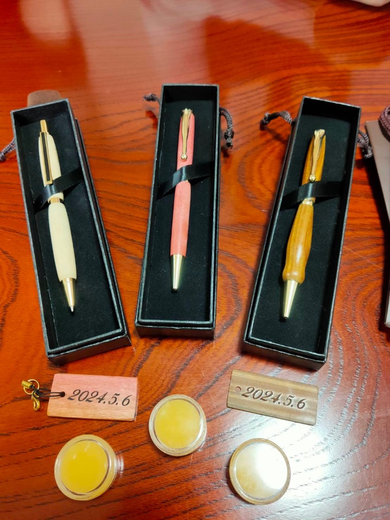 3人のご家族様がボールペンとシャープペンの体験工芸を体験してくれました。 お父さんはリグナムバイタボールペン、お母さんはピンクアイボリーのボールペン、娘さんはシカモアのシャーペンでした。3人共、上手すぎな仕上がりでした。