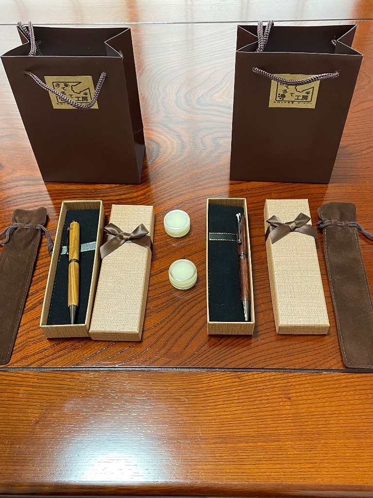 んで、親子2人でボールペンを作られました。娘さんは世界一重く硬い「リグナムバイタ」 娘さんの姉妹か友達だと思ったお母さんは、希少な「ココボロ」を選んで作りました。 良い出来上がりで喜んで頂き嬉しかったです。