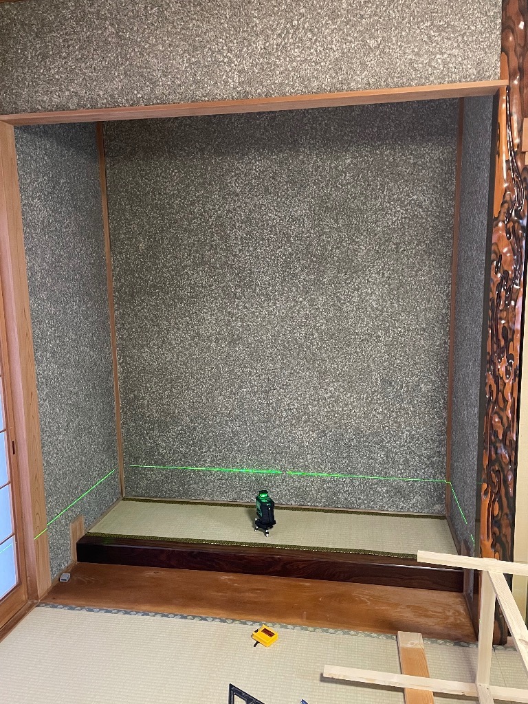 紀の川市の体験工房に住もうと思い、工房以外の部屋をDIYしてみます。収納スペースが少ない為、床の間に棚を作る事にしてみました。せっかく床の間の畳を新しくしたけど、掛け軸や仏壇も無いし、スペースの有効利用です。1人で住むのでそんなに荷物は無いのですが、今日は棚の骨組みを作りました。 明日は板を張る予定。