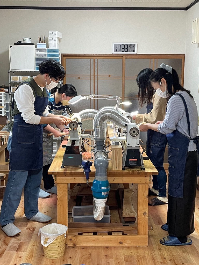今日の体験工房のお客様4人組は万年筆を作ってくれました。