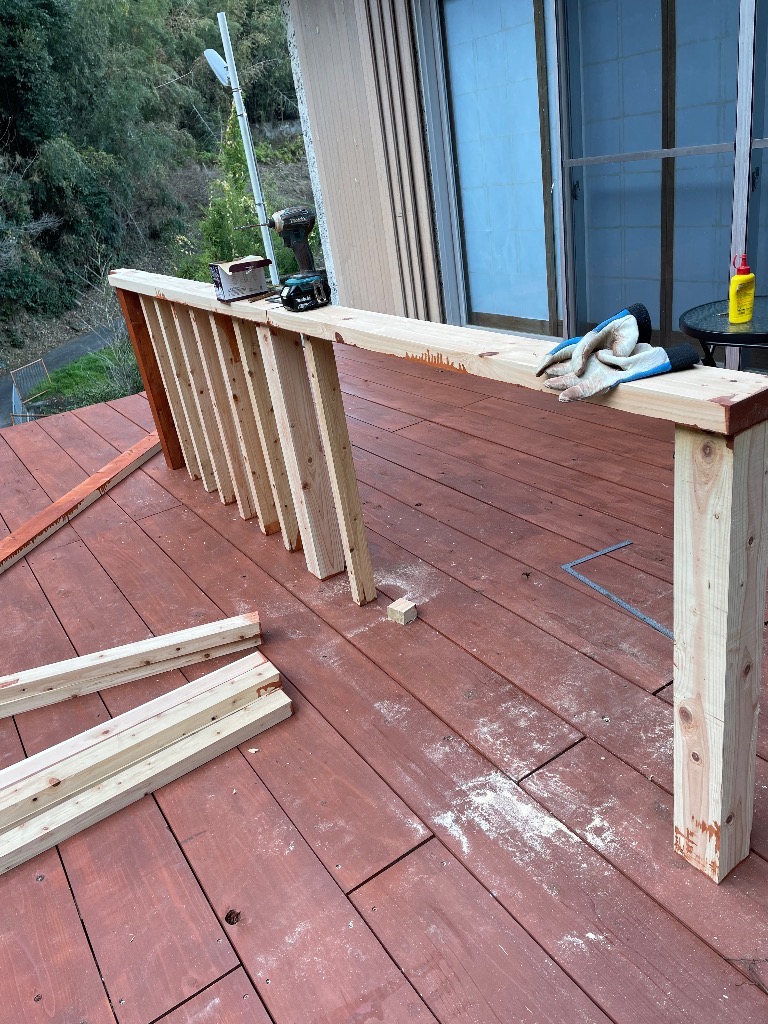 今日はウッドデッキに手すりを作りました。