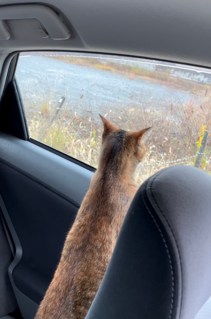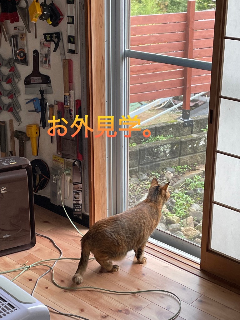 一度店長(キジトラ♀)を紀の川市の体験工房に連れて来たんだけど、可哀想なくらい泣き叫んでたので、工房へは連れて行くのは諦めてました。 久しぶりに今日、連れて行きました。ゲージに入れないで車に乗せてみました。 前回よりリラックスしていたので、慣れかな、、