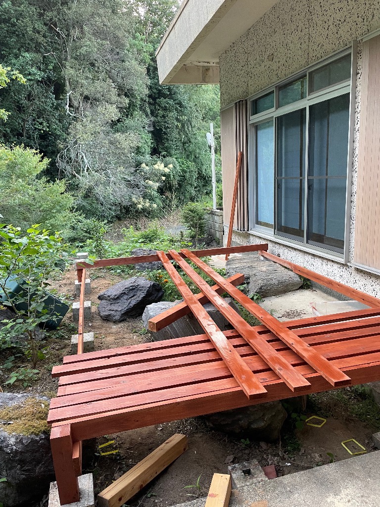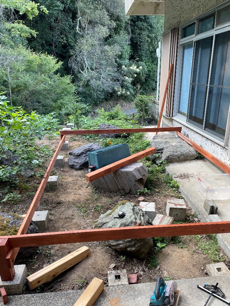 今日の紀の川市は晴れ。暑さはだいぶましになってきたので、ウッドデッキを作ろうと思います。