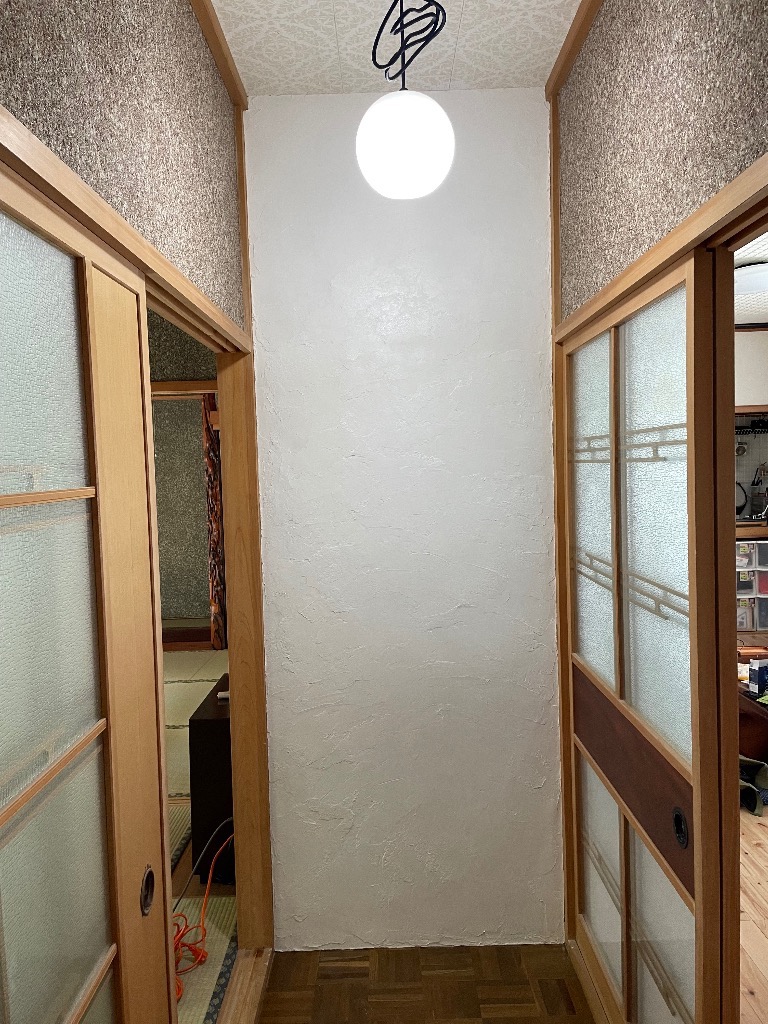 今日の紀の川市は晴れ。体験工房のお客様はなし。 なので物置き部屋の壁作りの続きをしました。石膏ボードを貼り、漆喰を塗り壁ができました。後は棚とか照明を付けたら完成です。