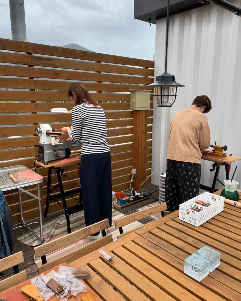 昨日は和歌山市のアンティークつづれ様の店先にて、フリーマーケット的なイベントに参加させてもらいました。旋盤やレーザー彫刻機を持って行き、木や革に彫刻してきました。 BBQも用意してくださり美味しいかったです。